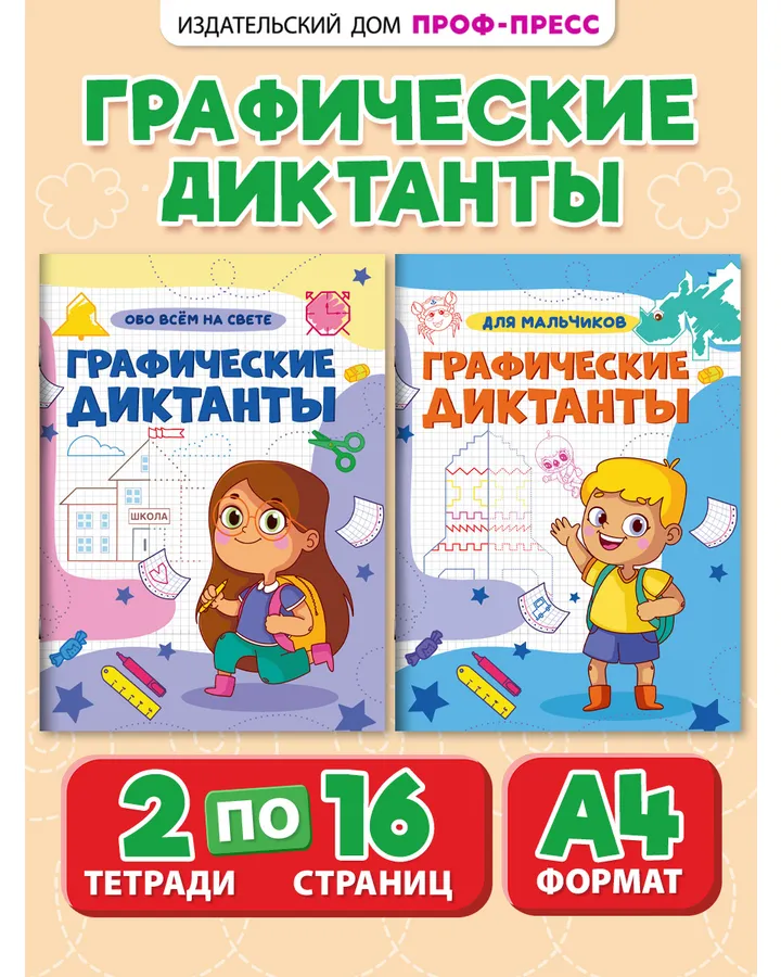 Прописи Проф-Пресс графические диктанты. Набор из 2 шт. А4. Для мальчиков+обо всём на свете