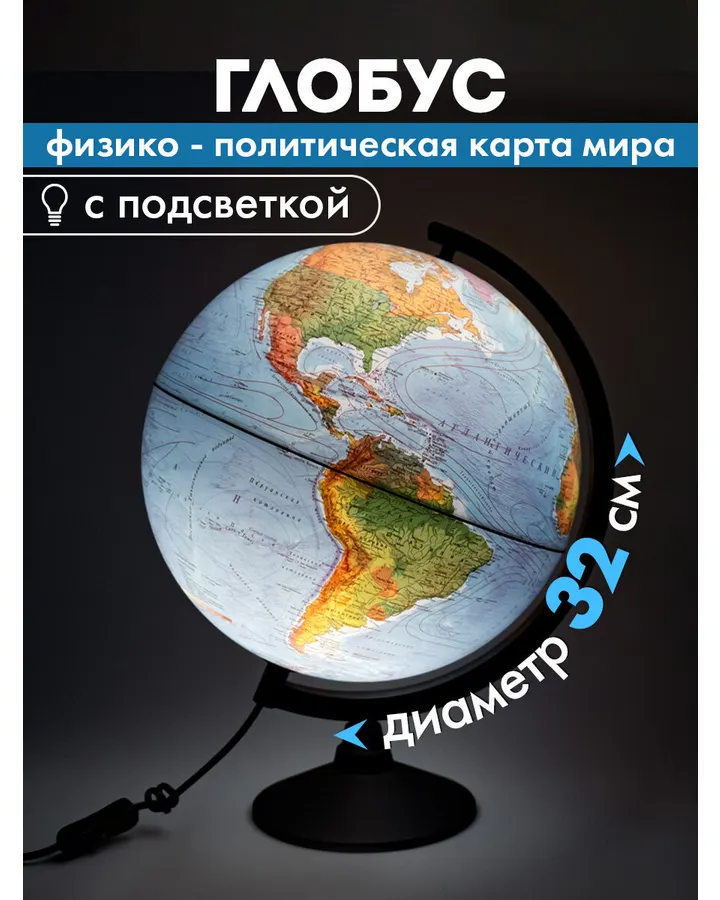 Глобус Globen физический политический с подсветкой диаметр 32 см