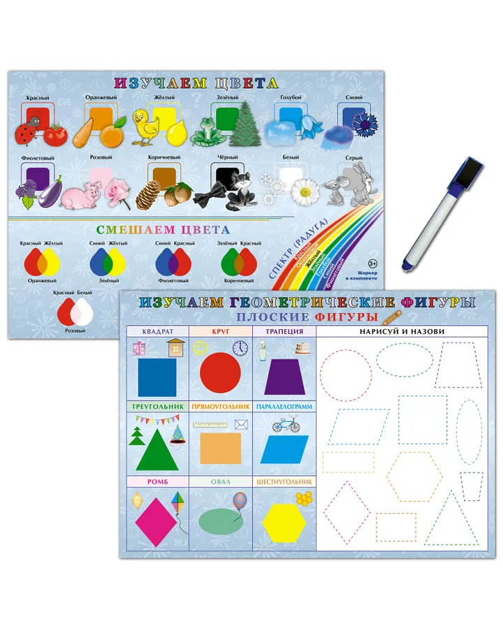 Учебное пособие РУЗ Ко Изучаем геометрические фигуры и цвета. Ламинированное с маркером