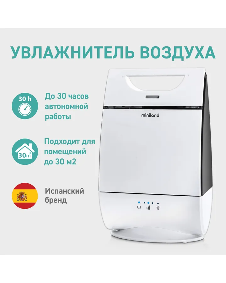 Увлажнитель воздуха Miniland HumitouchНравится как работает, практически безшумный, удобный дисплей НО неудобно выливать воду, постоянно проливаю, как-то непродуманно сделали