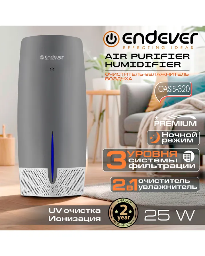 Увлажнитель воздуха ENDEVER OASIS-250Хороший увлажнитель. Работает в нескольких режимах. Сам выключается если нет воды.