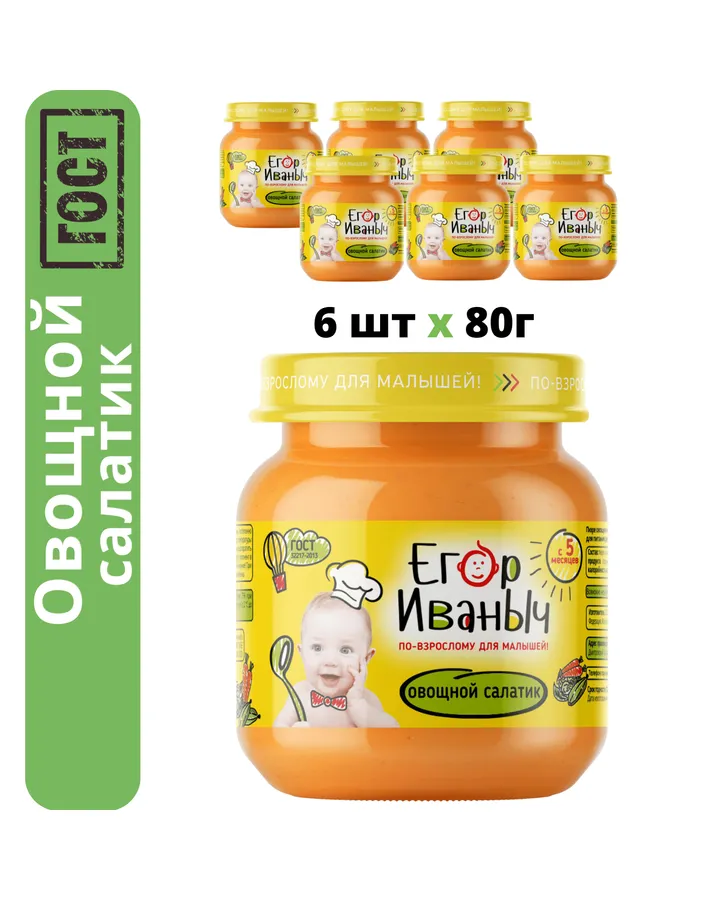 Пюре Егор Иваныч Цыпленок-картофель-капуста с 6 мес 100 г 6 упак.Григорий Саныч выражает своё одобрение пюре от Егора Иваныча. Сын ест с удовольствием, а он тот ещё нехочуха.