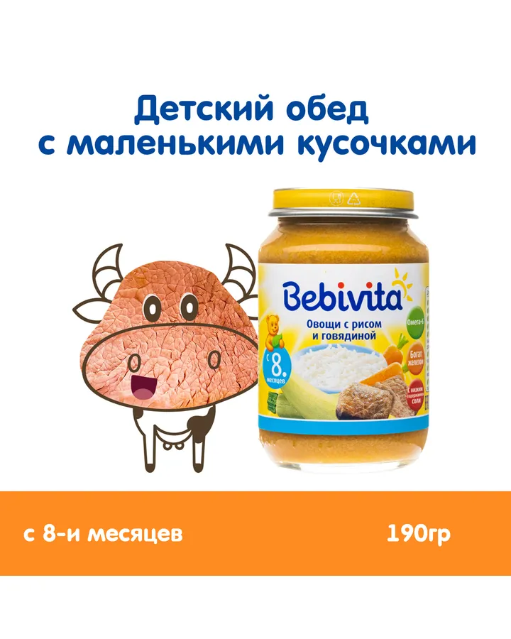 Пюре Bebivita Овощи с рисом и говядиной с 8 мес 190 г