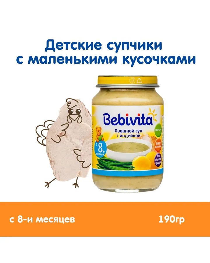Готовый обед Bebivita Суп овощной с индейкой с 8 мес 190 г