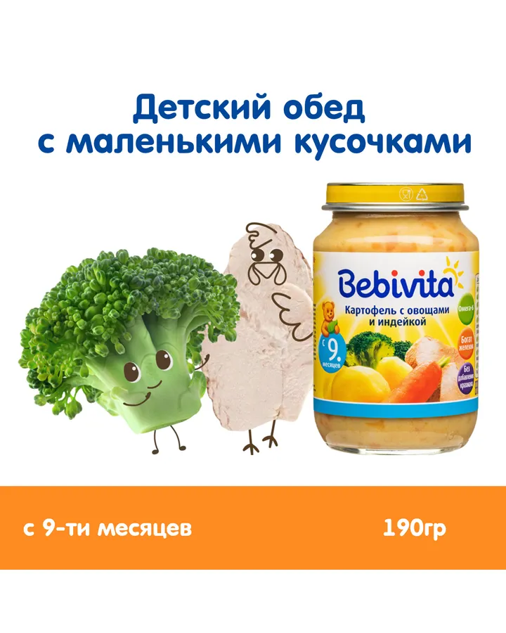 Пюре Bebivita Картофель-овощи-индейка с 9 мес 190 г