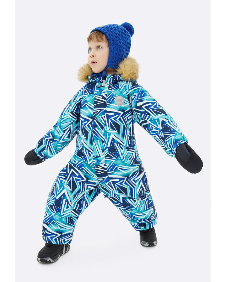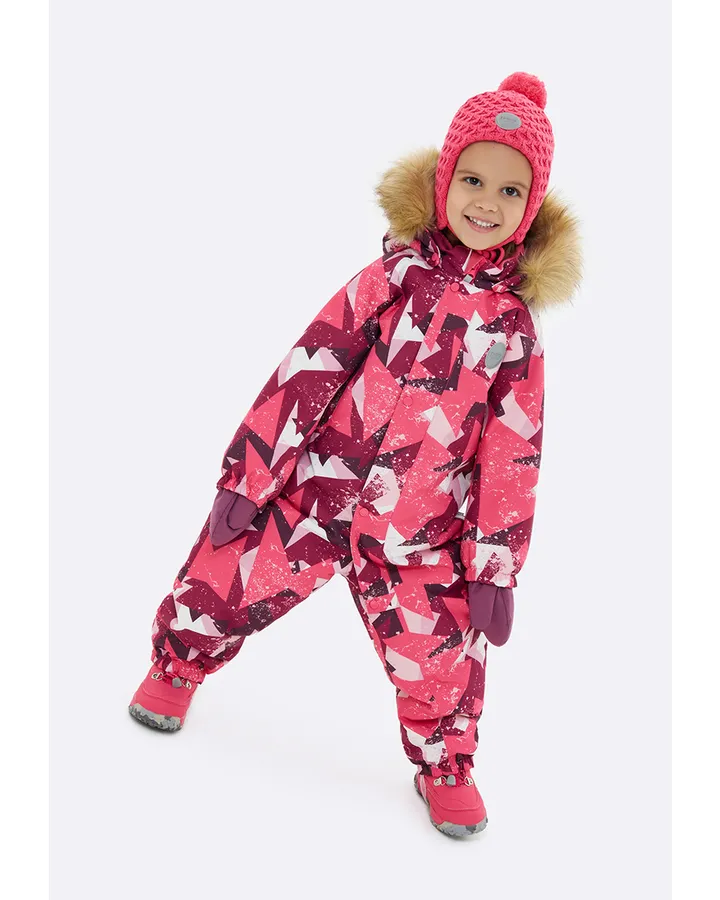 Идет в размер. Да, на куртке ткань снаружи жестковата, но у меня ребенок ходит в шапке-шлеме и ничего нигде ей не натирает. Ребенку кофмортно, удобно ходить. Костюм очень теплый, ребенок не мерзнет. Выглядит симпатично.
