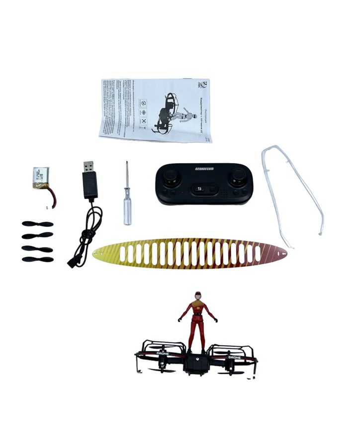 Летает, ездит. Не долго существовал. Бился только о натяжной потолок, но и это оказалось фатально. Ребенок был счастлив, а это главное. У взрослого, наверное, прожил бы подольше.