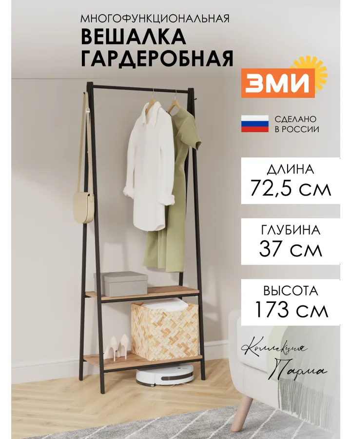 Напольная вешалка SOKOLTEC черная на колесах 160х55х42 см
