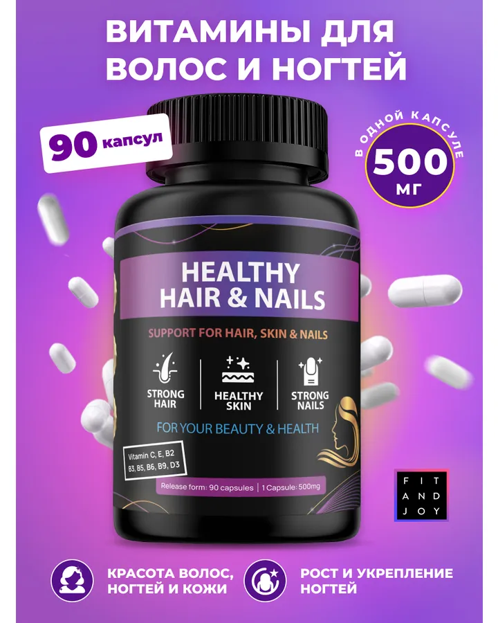 5Витамины для волос комплекс FIT AND JOY для ногтей и кожи с коллагеномХороший состав, ногти стали крепче
