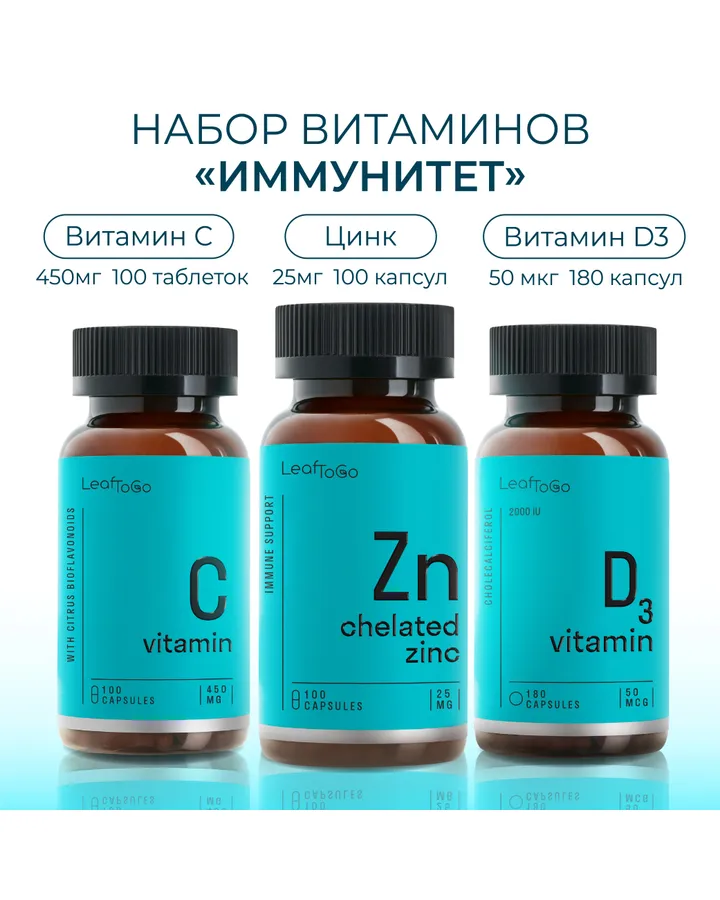 D3 + витамин С + Цинк Хелат LeafToGo комплекс витаминов для иммунитета