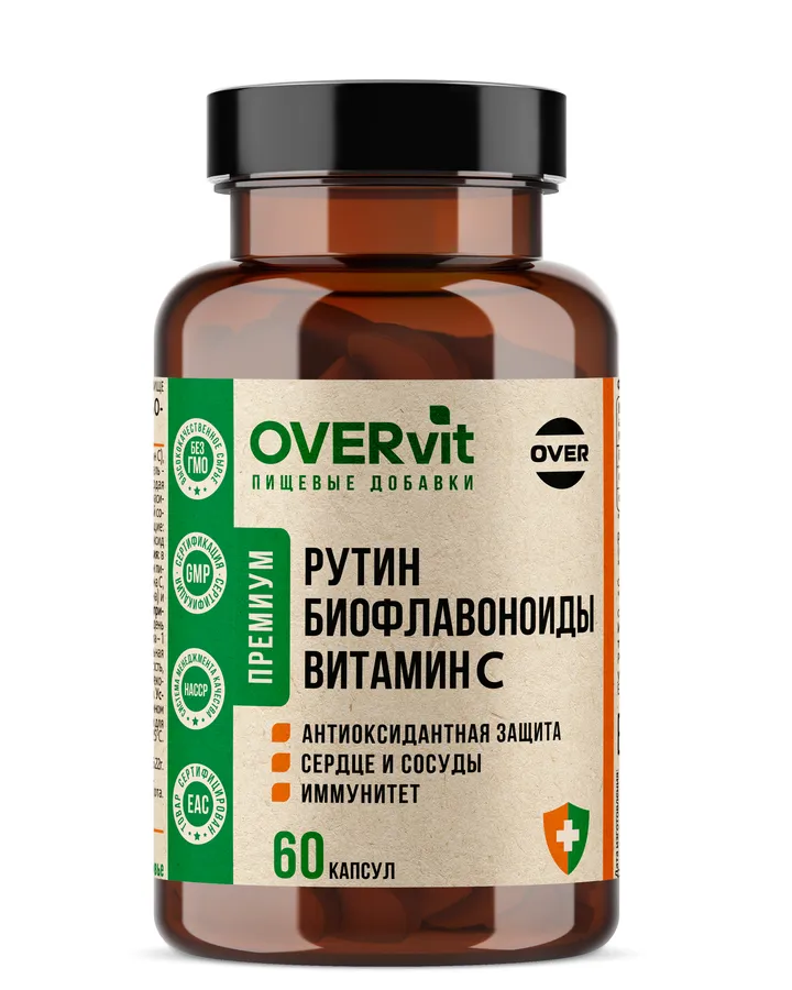 Витамин С+ Биофлавоноиды+Рутин OVER БАД для сосудов и иммунитета антиоксидантная защита 60 капсул