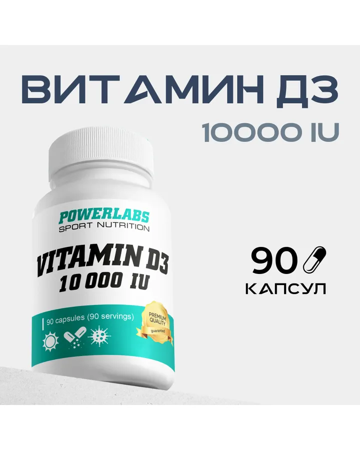 Витамины Powerlabs Д3 10 000 IU + К2 75 мкг 90 капсул