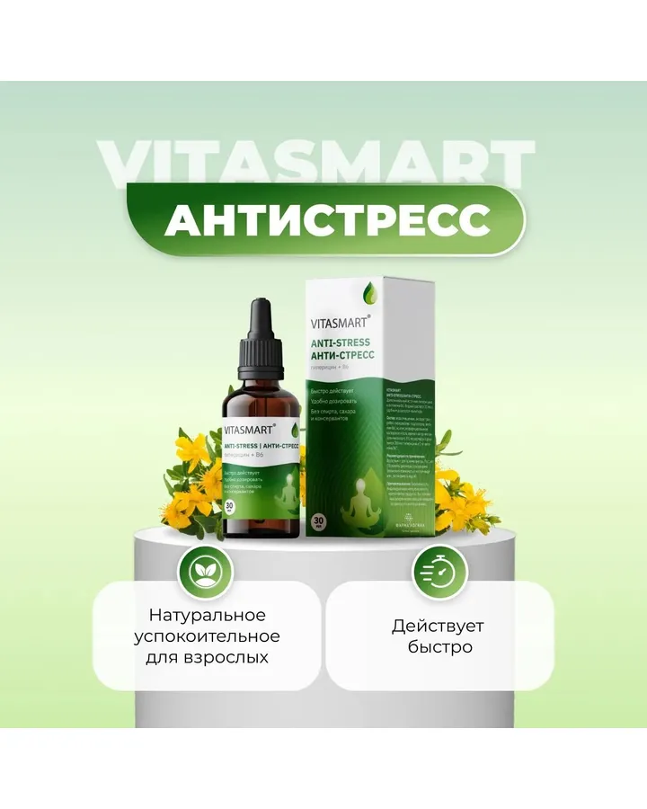 5Анти- стресс спрей VITASMART Зверобой гиперицин+В6 для сна успокоительное быстродействующее капли 30мл👍🏻👍🏻👍🏻