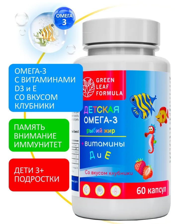 OMEGA-3 Рыбный жир тунца клубника Green Leaf Formula витамины для детей от 3х лет для взрослых для беременных иммунитет