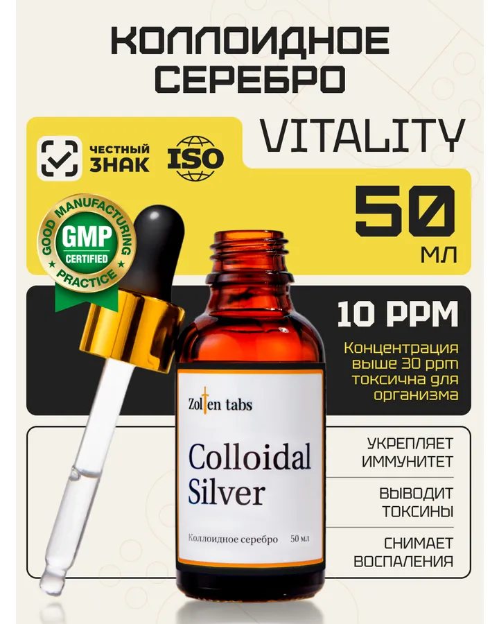 Коллоидное серебро форте Zolten Tabs 50 мл в каплях 10 ppm