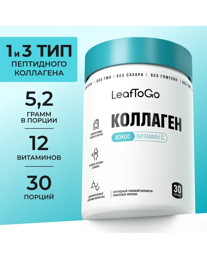 Пептидный коллаген с витамином С LeafToGo со вкусом кокоса 180 г