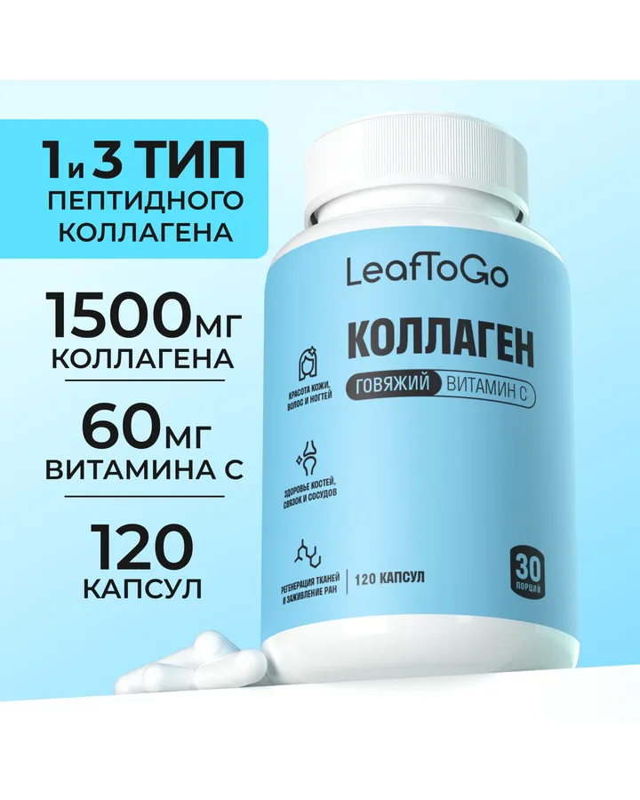 Морской пептидный коллаген LeafToGo с Витамином С 120 капсул