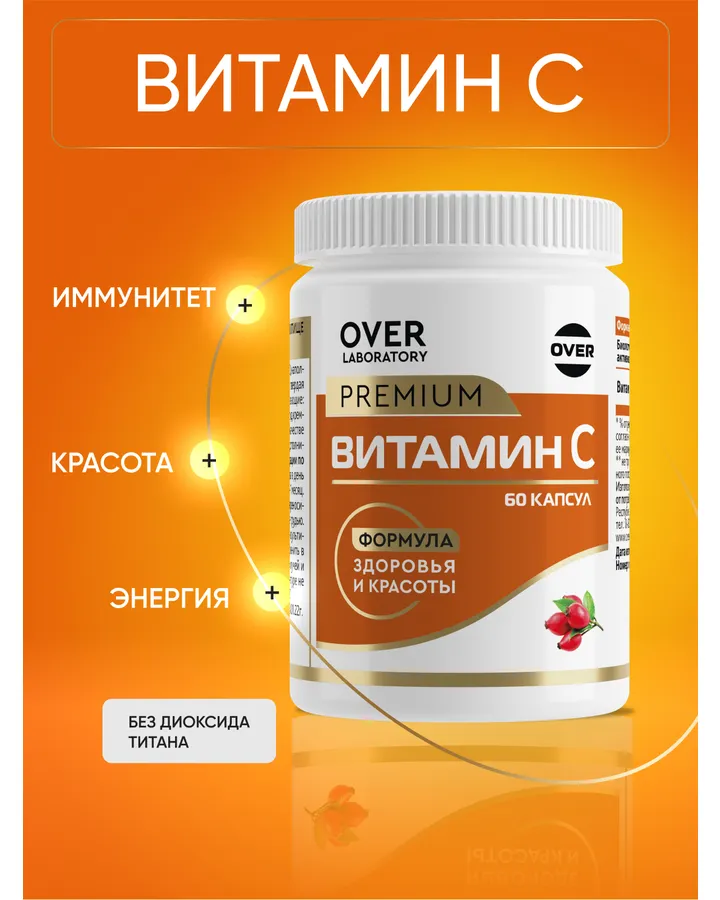 Витамин С аскорбат кальция OVER БАД для поддержания иммунитета 60 капсул