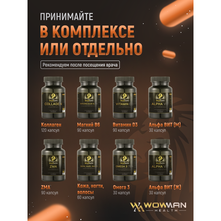 ZMA + B6 бустер тестостерона WowMan ЗМА для мышц и выносливости
