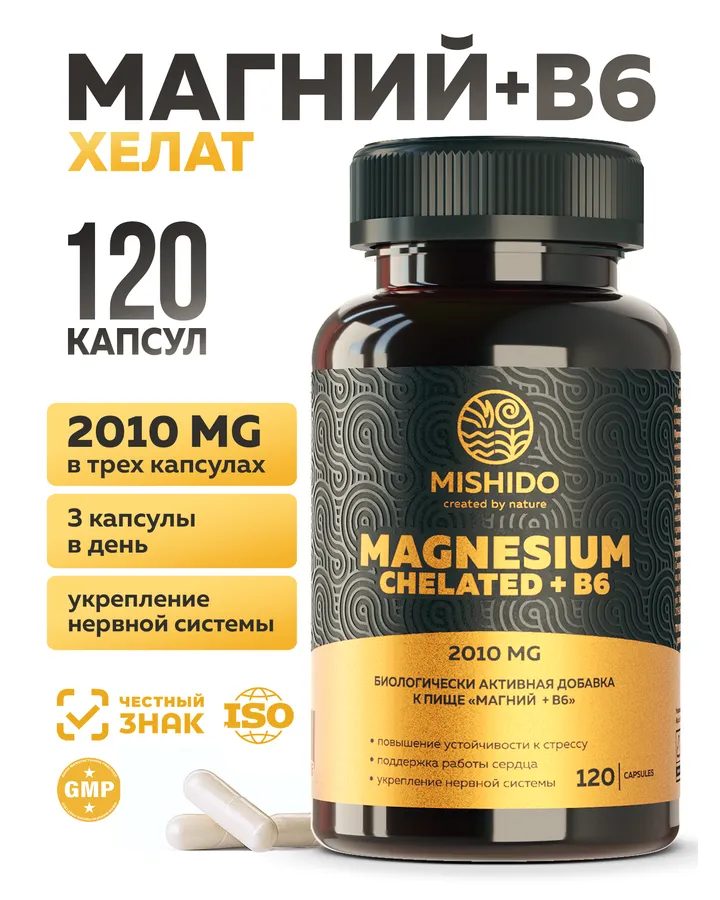 БАД к пище MISHIDO Магний+B6 120 капсул массой 800мг