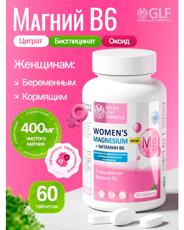 5Магний В6 Green Leaf Formula для беременных кормящих женщинбессонница стала случаться реже, а дневная усталость уменьшилась