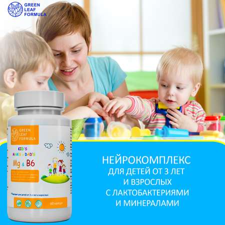 Магний В6 детский Green Leaf Formula витамины для мозга нервной системы для кишечника для СРК 60 капсул