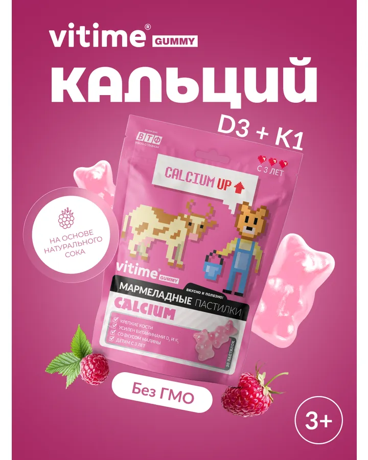 Мармеладные пастилки Кальций + D3 Vitime Gummy VITimeВитайм Классик Витамин Д3 – отличный и эффективный источник жизненно важного витамина. Он помог мне реально поднять уровень D по анализам и улучшить самочувствие. Удобная форма, хорошее усвоение.