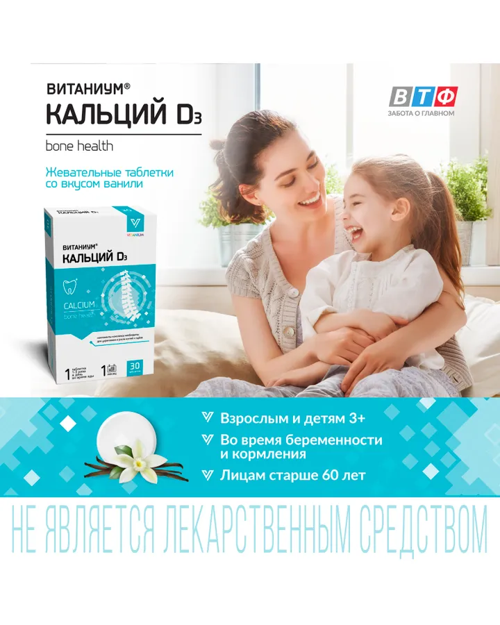 Кальций D3 Vitanium Витаниум 30 жевательных таблетках