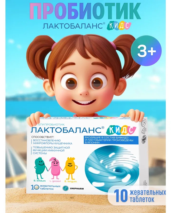 Мультипробиотик Лактобаланс Кидс детям с 3 лет 10 жевательных таблеток