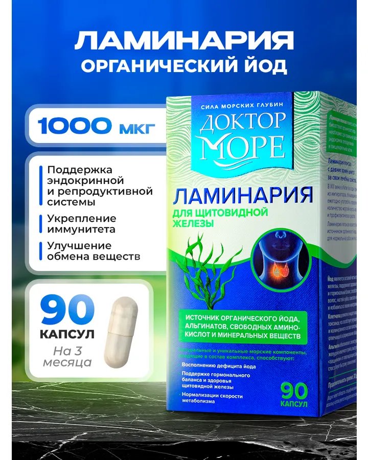 Ламинария японская Доктор Море Морской органический йод 30 капсул 1000 мкг