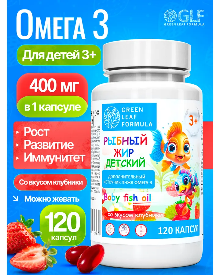 5Омега 3 витамины для детей Green Leaf Formula рыбий жир с витамином D3 и Е со вкусом апельсинаОтличная омега 👍
