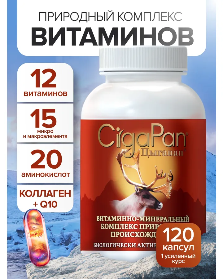 5Мультивитамины для взрослых Цыгапан CigaPan Цыгапан комплекс витаминов и минералов для женщин и мужчин 120 капсул 400 мг