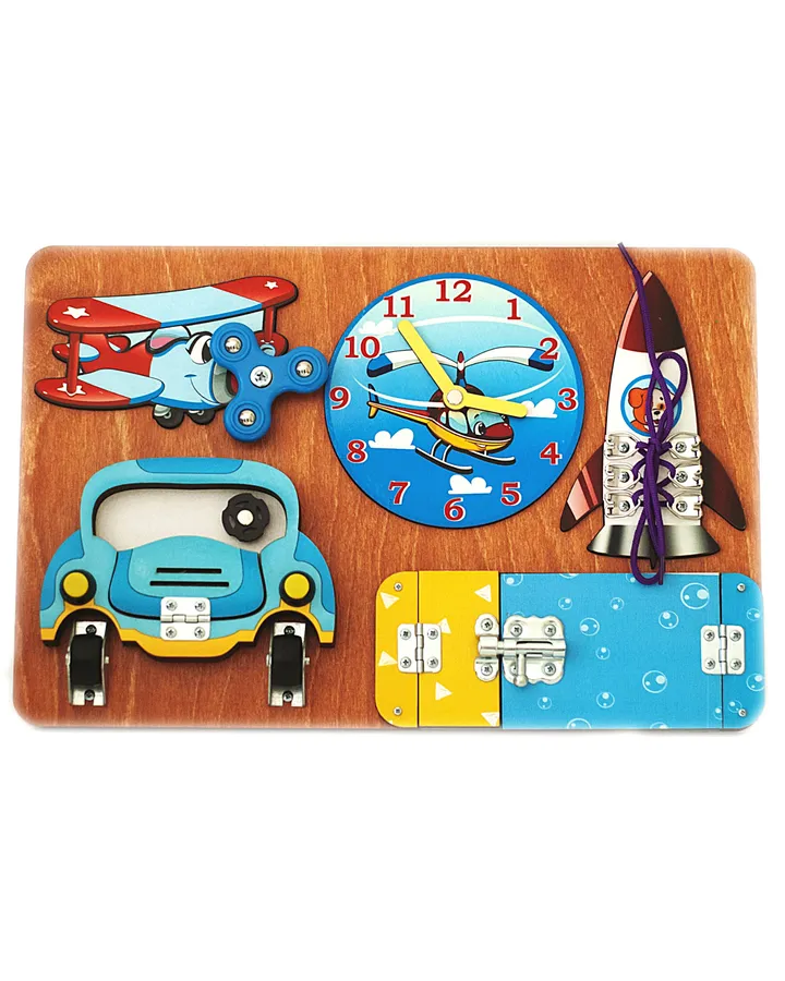 Купили бизиборд для дочек 2,5 лет.Им очень понравился,постоянно с ним играют.Мы вместе придумываем разные сюжеты сказки.Качество исполнения игрушки на высоте.Ничего не сломалось,не отклеилось.Рекомендую!