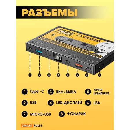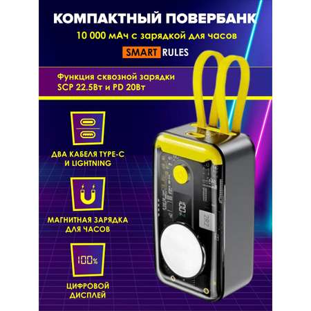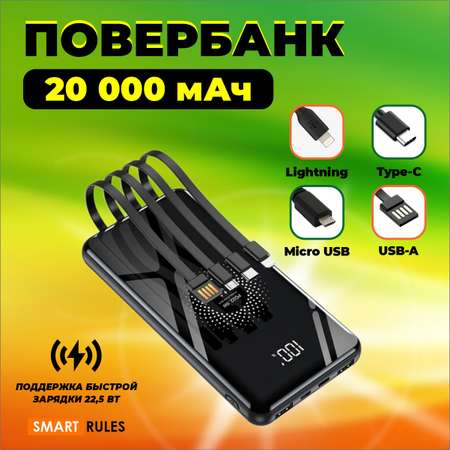 Повербанк SmartRules с дополнительными кабелями USB QC 3.0 PD