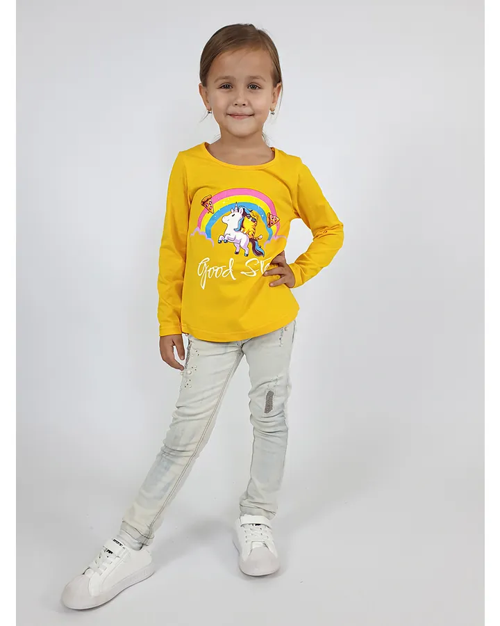 Купила на 116 см. Обычно водолазки дети не любят из-за горла, а эта нормально заходит - воротник мягкий, голову не сжимает. Цвет очень жизнерадостный.