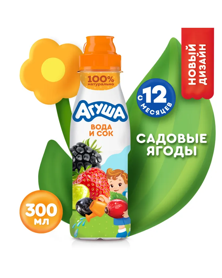 Вода с соком Агуша Садовые ягоды 0.3л 12месяцев