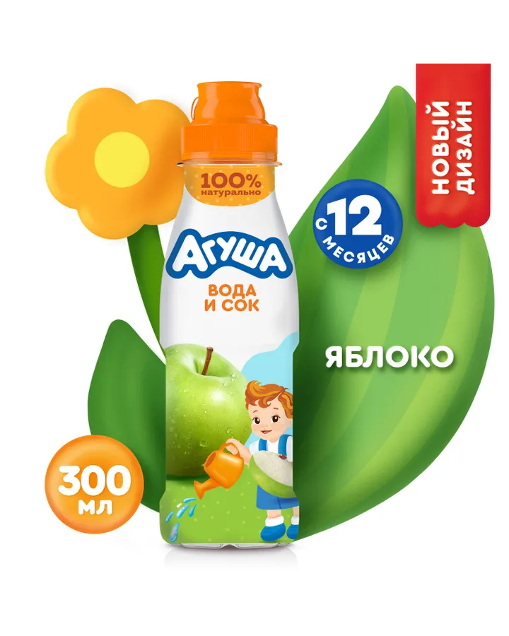 Вода с соком Агуша Яблоко 0.3л 12 месяцев