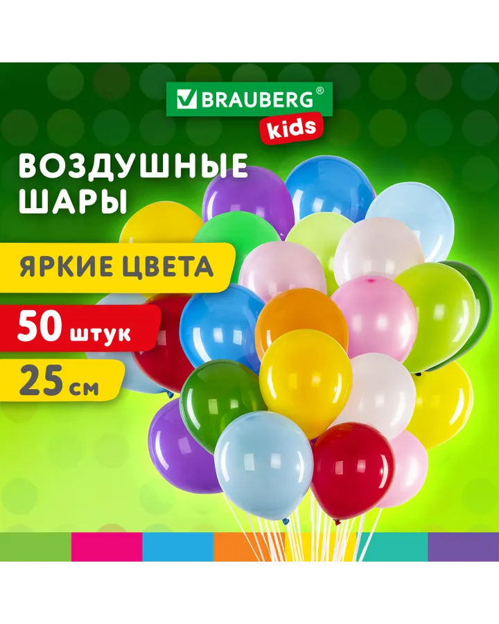 Шары воздушные Brauberg Набор 50 шт яркие цвета для фотозоны на день рождения