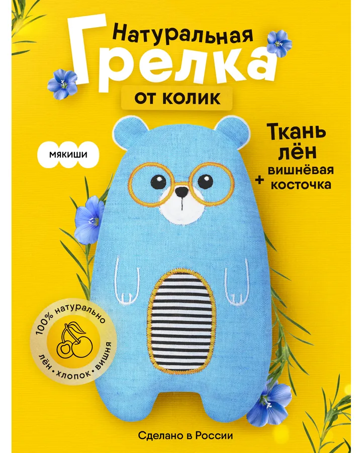 Игрушка Мякиши Детская грелка с вишнёвыми косточками Мишутка для новорождённых от коликов подарок