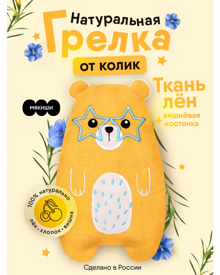 5Игрушка-грелка Мякиши для новорожденных с вишнёвыми косточками от колик РазоГрелка Медвежонок Бонни