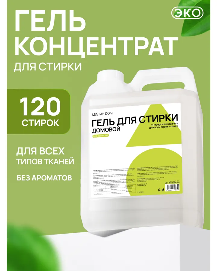 Гель для стирки МИЛИН ДОМ 5 лСупер гель, экономичный и чистый.стираю для всей семьи