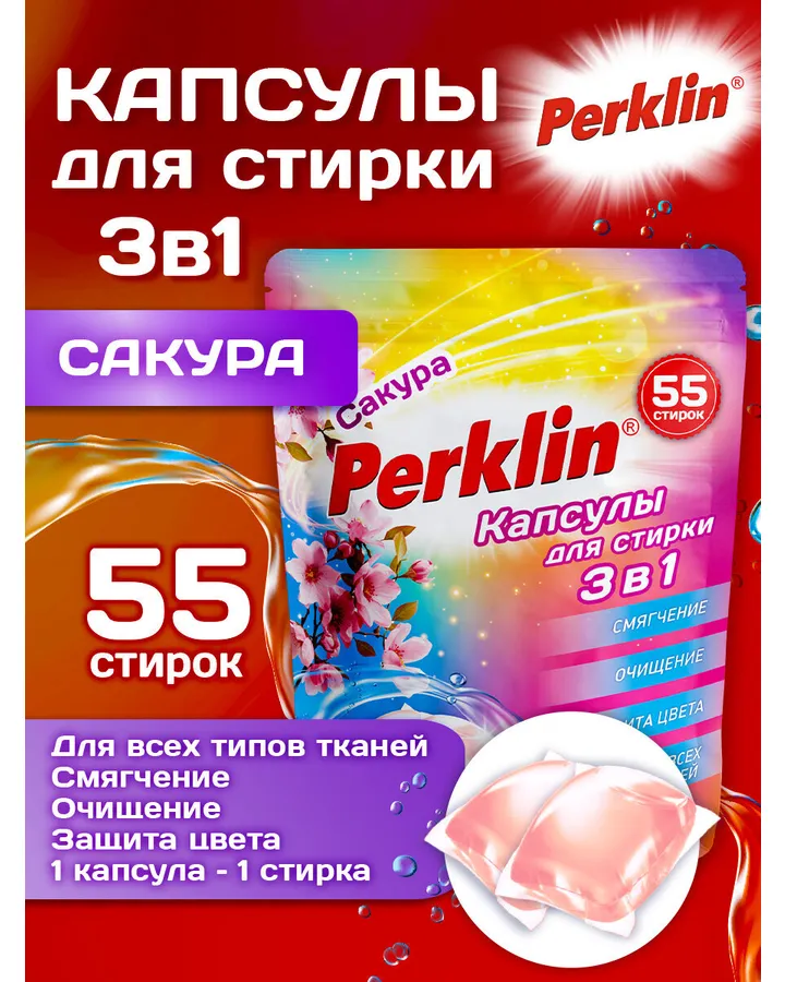 Капсулы для стирки Perklin Сакура 0.44 кг 55 шт.