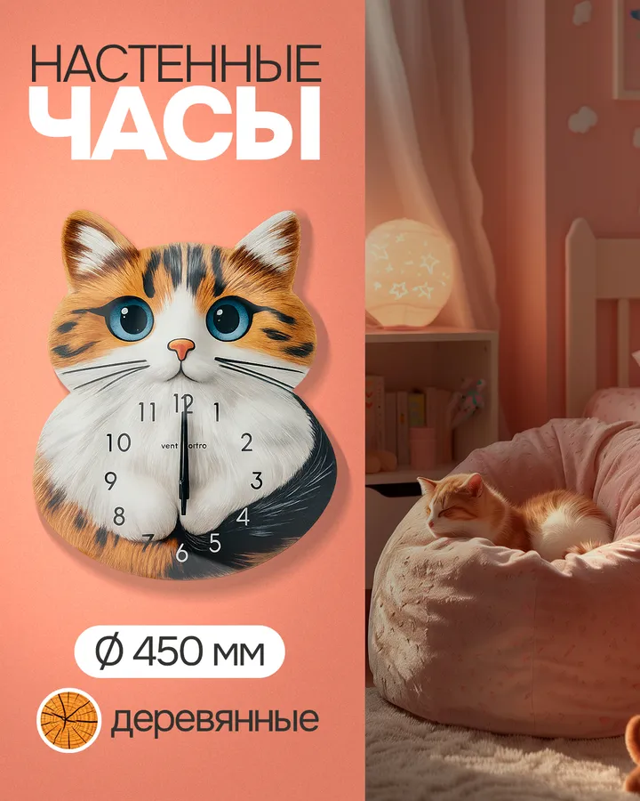 Часы 1TOY настенные детские Кот D 450 мм