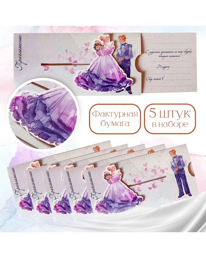 Набор приглашений на свадьбу BimBiMon 5 штук