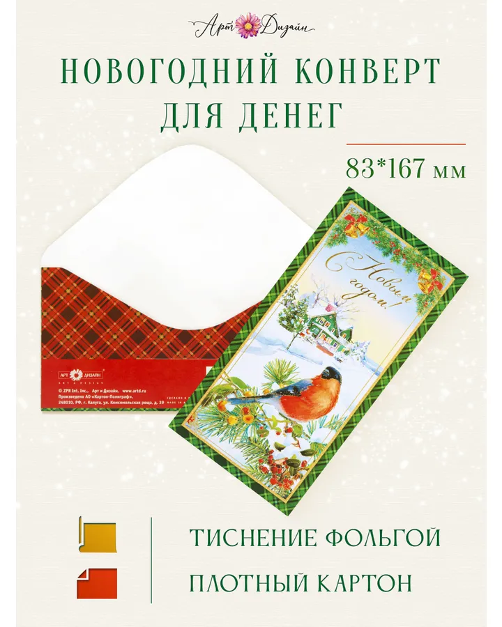Открытка конверт для денег Арт и Дизайн С Новым Годом! 83х167 мм
