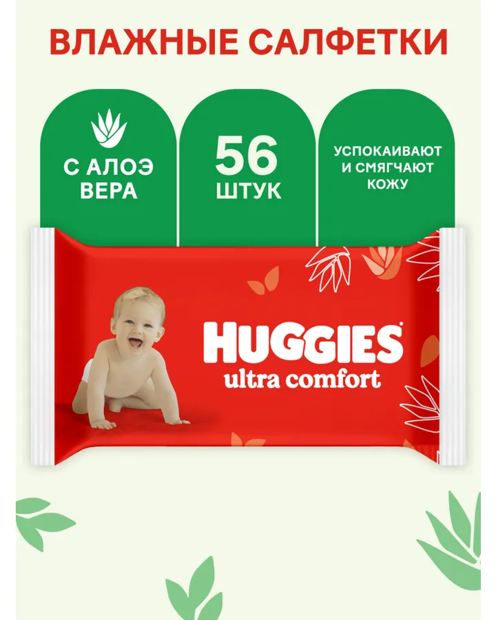 Позаботьтесь о комфорте и гигиене вашего малыша с нашими салфетками Huggies! Насыщенные увлажняющими компонентами, они нежно очищают и освежают деликатную кожу ребенка.
