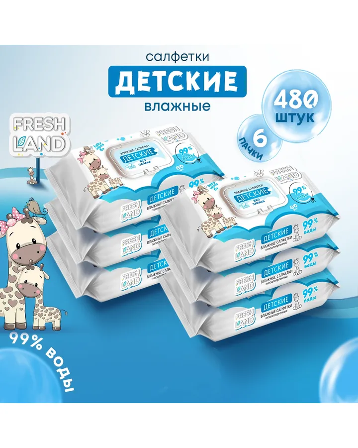 Влажные салфетки FRESHLAND 6 упак. 80 шт.