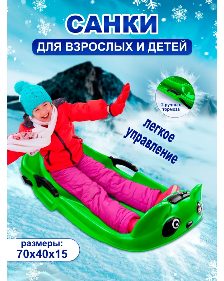 Не знаю для кого пишут что ледянка большая, ребенок 1,7 поместился но спинки нет и сидеть малышу не удобно а второй ребенок 8 лет и ростом 140см не поместился , ноги поджала прям к груди. Очень тонкий пластик. Не советую