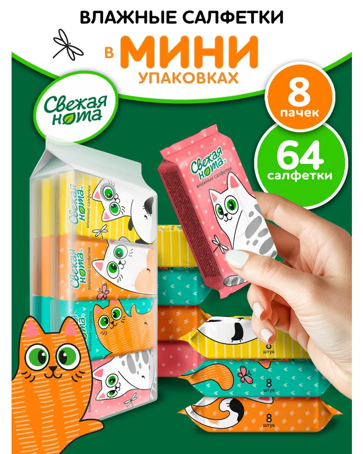 Влажные салфетки Свежая нота 8 упак. 64 шт.