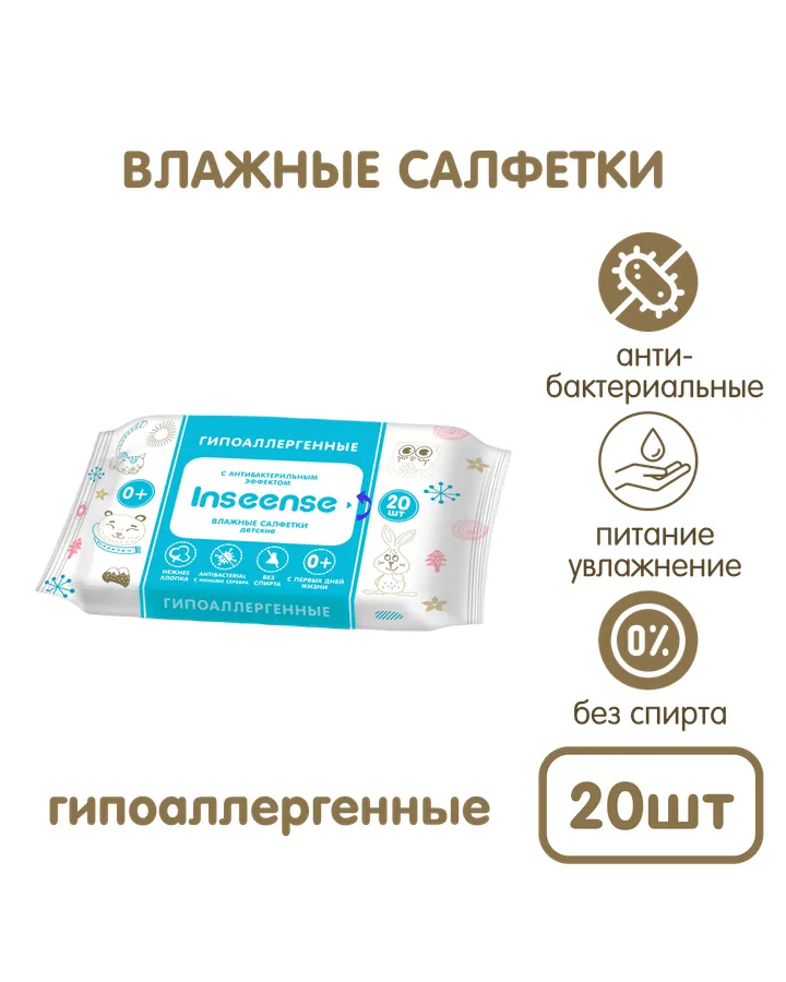 Влажные салфетки INSEENSE антибактериальные 20 шт.
